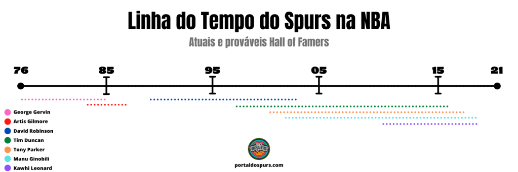Como vimos, apesar da falta de glamour, a verdade é que em sua história na NBA o San Antonio Spurs esteve sempre representado por uma ou mais grandes estrelas. Pode-se dizer, inclusive, que foram pouquíssimos os momentos da história em que a franquia não fora liderada por um jogador digno de Hall da Fama do basquete, honraria que chega apenas aos maiores da história do esporte.