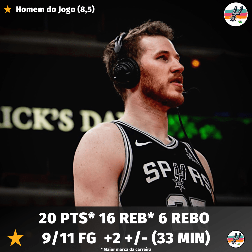 📊 J Poeltl – 20pts 16reb 9/11FG (33min)