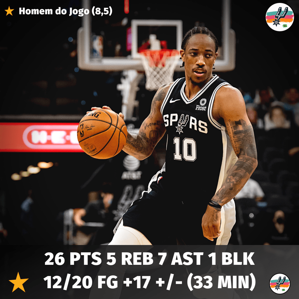 📊 D DeRozan – 26pts 5reb 7ast 1blk 12/20 FG +17 +/- (33min)