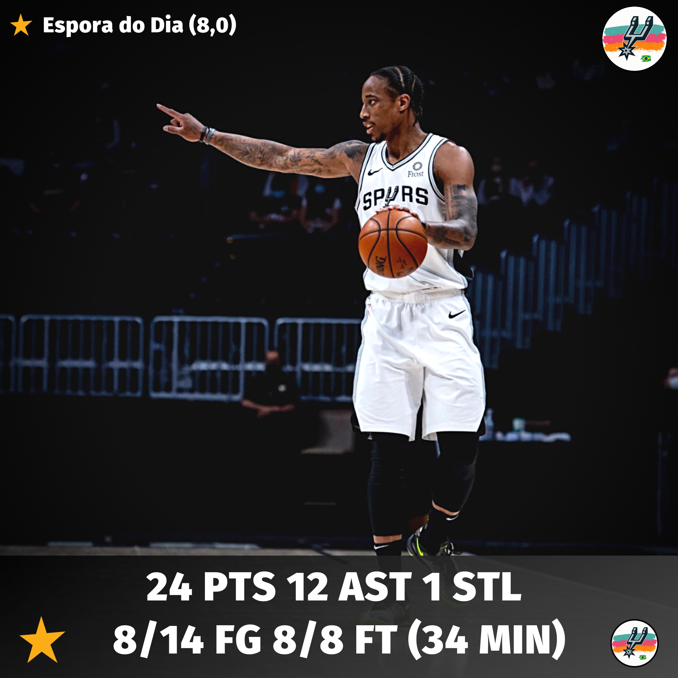 📊 D DeRozan – 24pts 3reb 12ast 1stl 8/14 FG (36min)