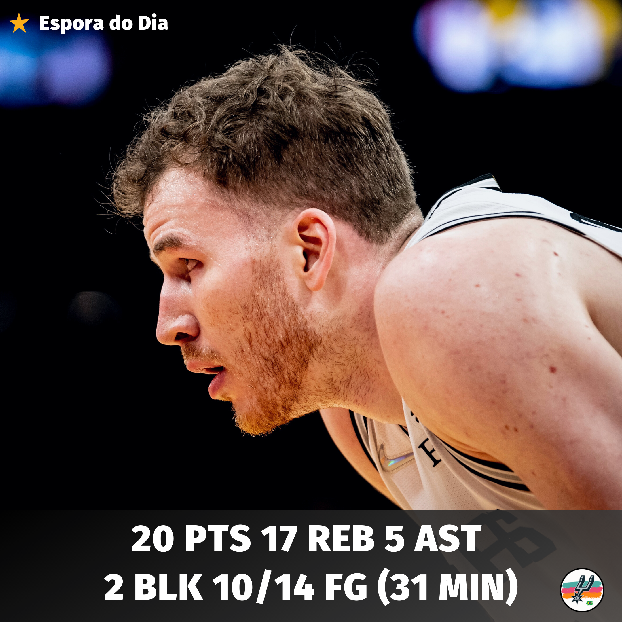 ⭐ J Poeltl – 20pts 17reb 5ast 2blk 10/14 FG (31min)