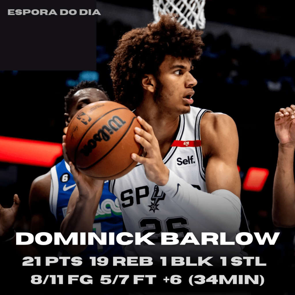 Espora do Dia: Dominick Barlow – 21pts 19reb 1blk 1stl 8/11 FG +6 (34min).
