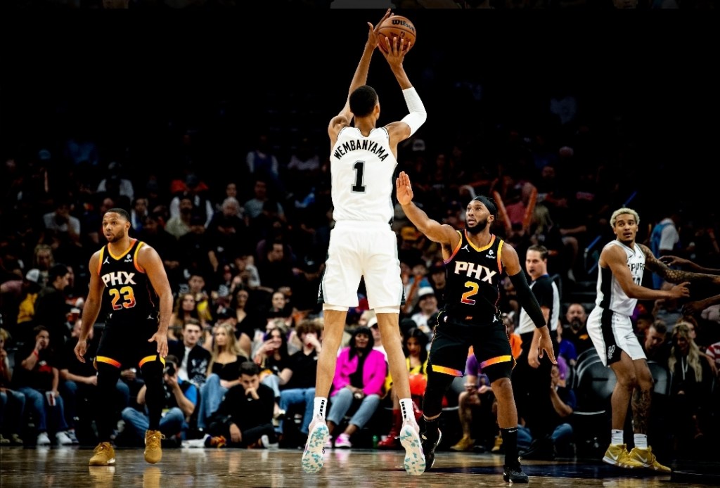 Após o que vinha sendo mais um jogo de defesa frágil, o Spurs mudou a chave e segurou o Suns para apenas 19 pontos no quarto período, principalmente graças a uma boa execução de uma defesa por zona que tirou os adversários do conforto no ataque e mudou o momentum da partida. Além disso, Wemby foi colocado por mais tempo na posição 5 e passou a fazer melhores escolhas no final do jogo, como vem sendo costumeiro.