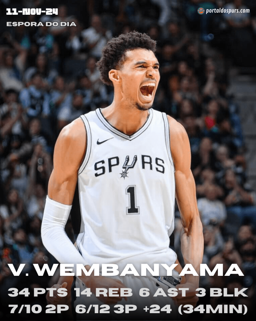 Além de Wemby, também vimos uma ótima partida de Chris Paul, que terminou com mais um duplo-duplo (12p 11a) e poucos erros (1t), bom jogo de todos os demais titulares, incluindo mais uma grande performance de Castle (10p 6a) e outra participação promissora de Vassell, que dessa vez não foi tão bem quanto no sábado, mas foi importantíssimo arranjando arremessos difíceis (12p, 3/5 3p) no segundo tempo enquanto os titulares descansavam.