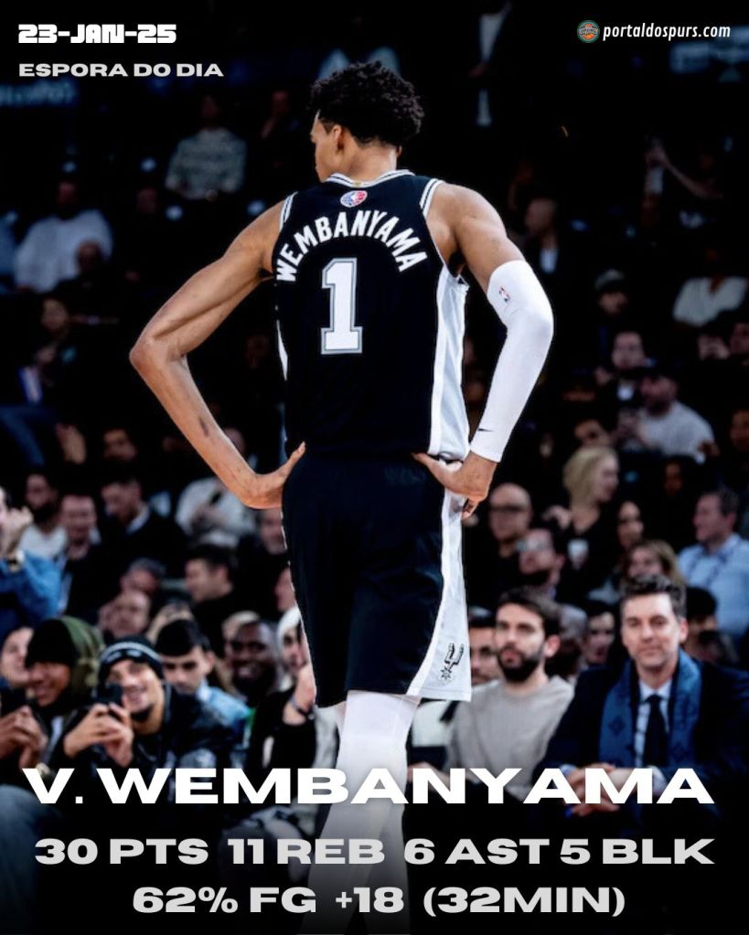 Após o intervalo, os texanos mostraram talvez o seu melhor basquete da temporada. Boa defesa, ótima transição e muita gente pontuando no ataque, incluindo a segunda unidade, que vinha sendo um problema. Além, é claro, de uma grande performance de Wembanyama, que deixou transparecer em quadra sua empolgacao por estar jogando pela NBA em sua terra e brilhou como o astro do basquete mundial que já é.