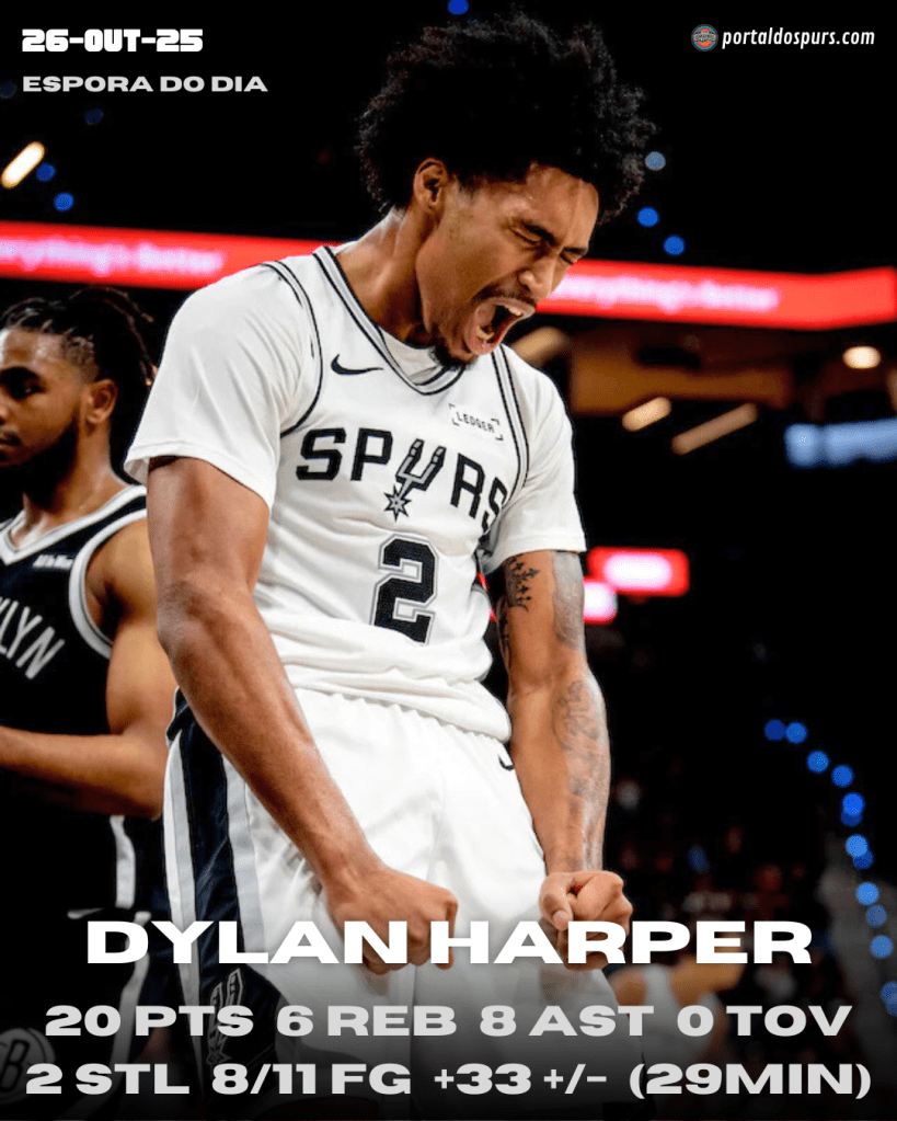 No time de Wemby, que certamente – com justiça – dominará os highlights nas redes mais uma vez, foi a técnica do novato Dylan Harper e a energia do veterano Keldon Johnson que garantiram o triunfo em San Antonio.