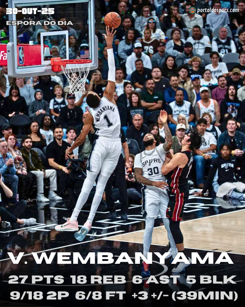 Miami Heat 101-107 San Antonio Spurs (30 de outubro de 2025)
