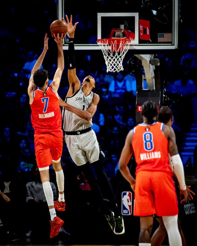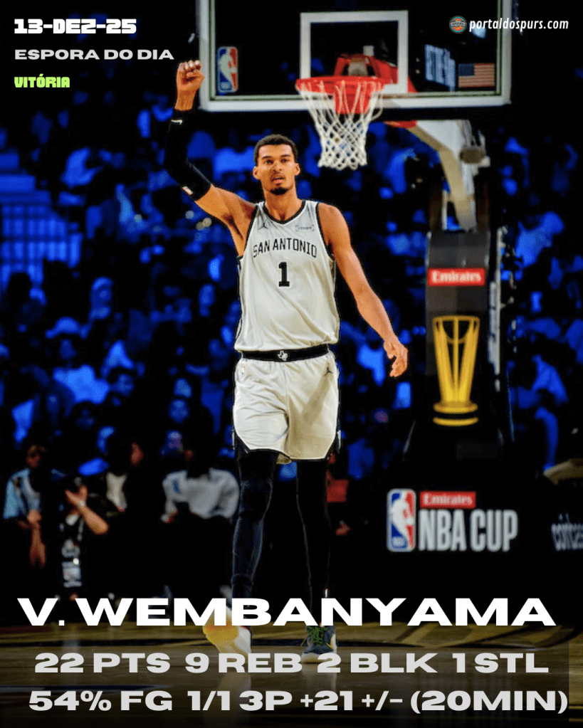 De volta após 12 jogos fora, o francês começou no banco e só entrou no início do segundo quarto, quando a partida parecia caminhar para mais uma vitória fácil do Thunder, até que ele mudou o jogo. Em 7 minutos que esteve em quadra no primeiro tempo, o Spurs teve saldo +20, para compensar os -23 de quando esteve fora. O déficit chegou a 16 pontos, mas no intervalo o placar já era 46-49 graças a Wemby.