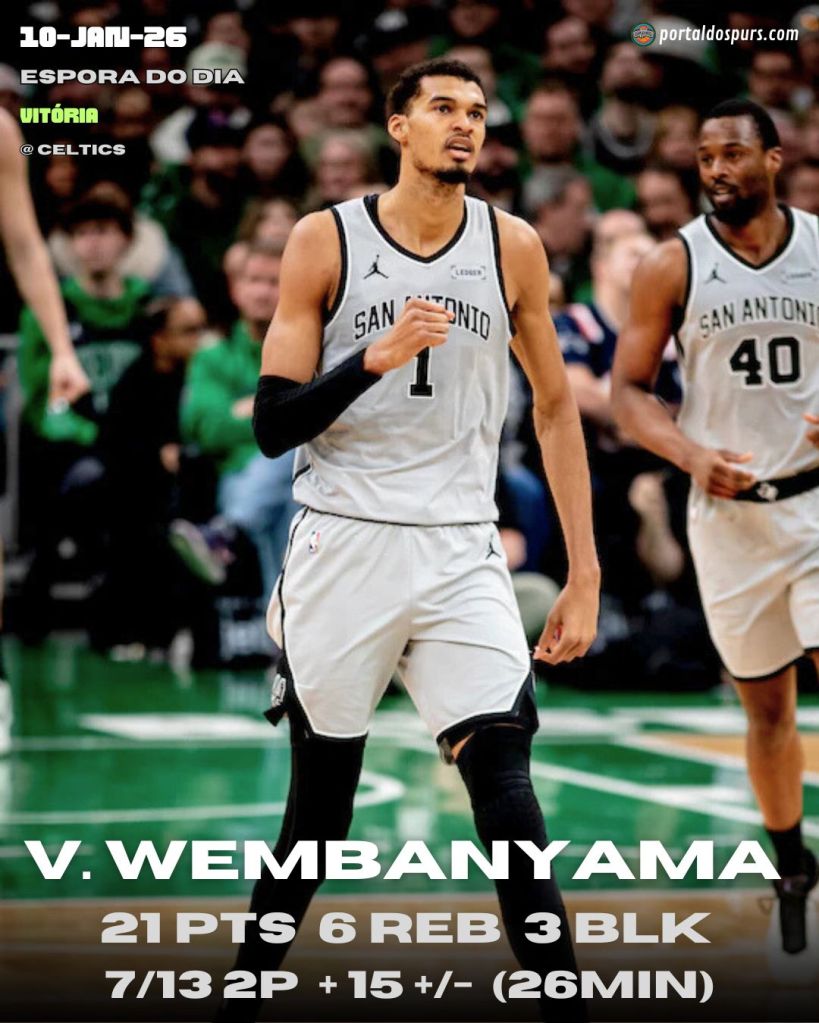 Com dois dos arremessos mais clutch que se pode esperar de sua estrela, Wembanyama foi o grande responsável pela vitória. Converteu duas bolas espetaculares na meia distância nos últimos 90 segundos de jogo para vencer e, antes disso, já havia aterrorizado o Celtics na defesa. Mesmo saindo do banco, terminou com 21 pontos, 3 tocos e o melhor saldo do jogo (+15) em apenas 26 minutos.