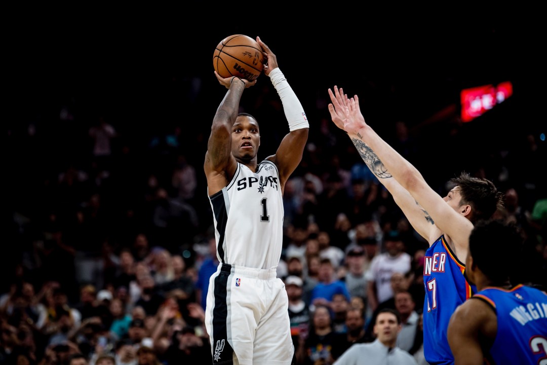 Diante de um Oklahoma City Thunder desfalcado, o San Antonio Spurs não fez um grande jogo, mas converteu bolas longas e contou com um game-winner de Lonnie Walker para sair de quadra vitorioso. Antes disso, todavia, o que nos salvou de verdade foram as bolas várias bolas de três pontos convertidas. Ao total, o Spurs fez 19 de 41 bolas longas tentadas (46%), produzindo 18 pontos a mais que o Thunder (13/35 3P) nessa área da quadra. Área em que, mais uma vez, Keldon Johnson foi o grande destaque do time.